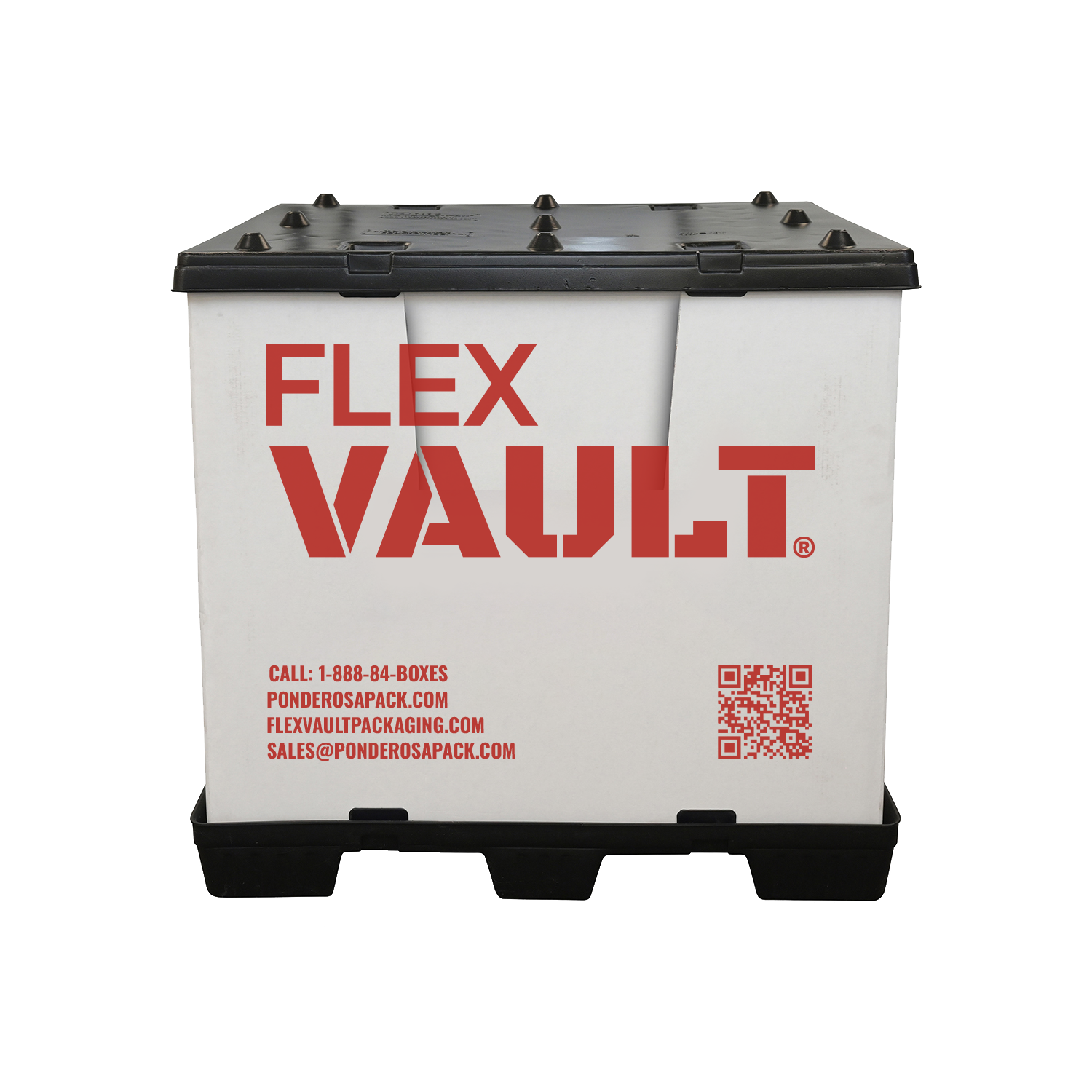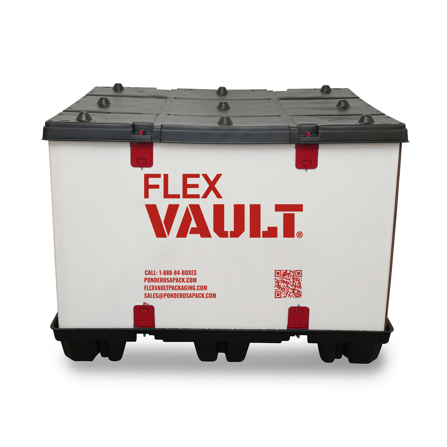 Flex Vault® containers can hold up to 2,000 lbs and are built to last through up to 100 uses before replacement, providing exceptional long-term value while remaining 100% recyclable at end of life.